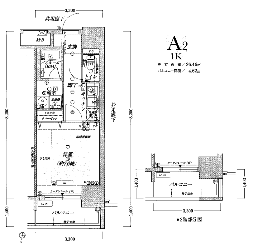 | 専有面積 | 26.46㎡(壁芯) |